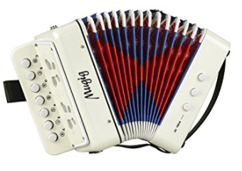 This one takes some getting used to and isn’t exactly set up like a piano. But it does require relatively little by way of fine motor development and the notes are setup highest to lowest like a piano. The buttons are clearly labeled where students can find what they are looking for and they push or pull the accordion to make the sound.