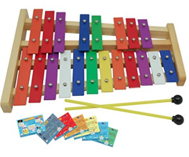 - 2 Octaves to 1 Octave – Again, may xylophones are just a C scale, which is fine but limiting. I would say in the least be sure to buy one that goes from C to C but I also like to have at least down to a bass G for many of the songs that the kids learn (like the one below). Two full octaves is even better!